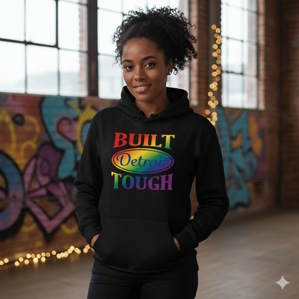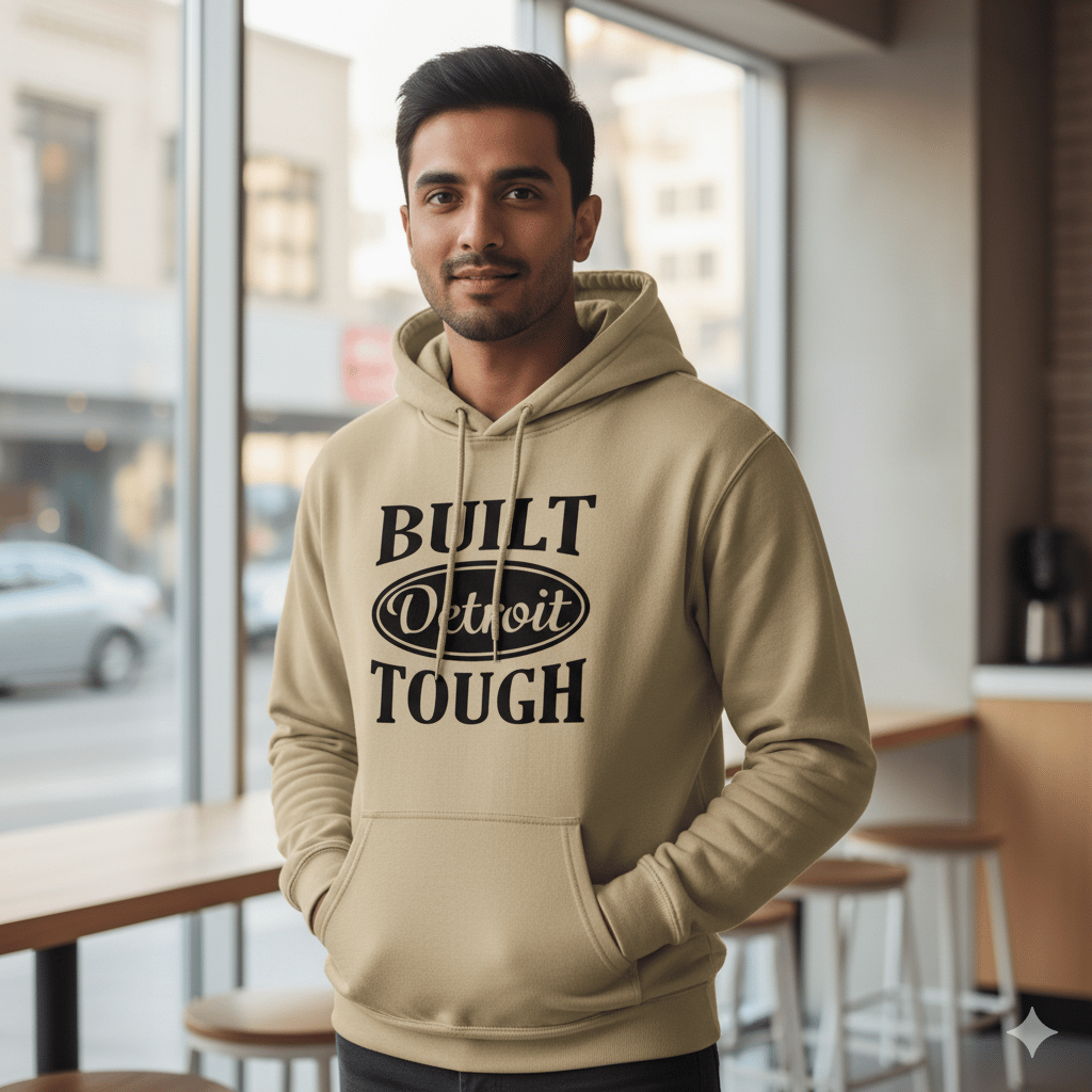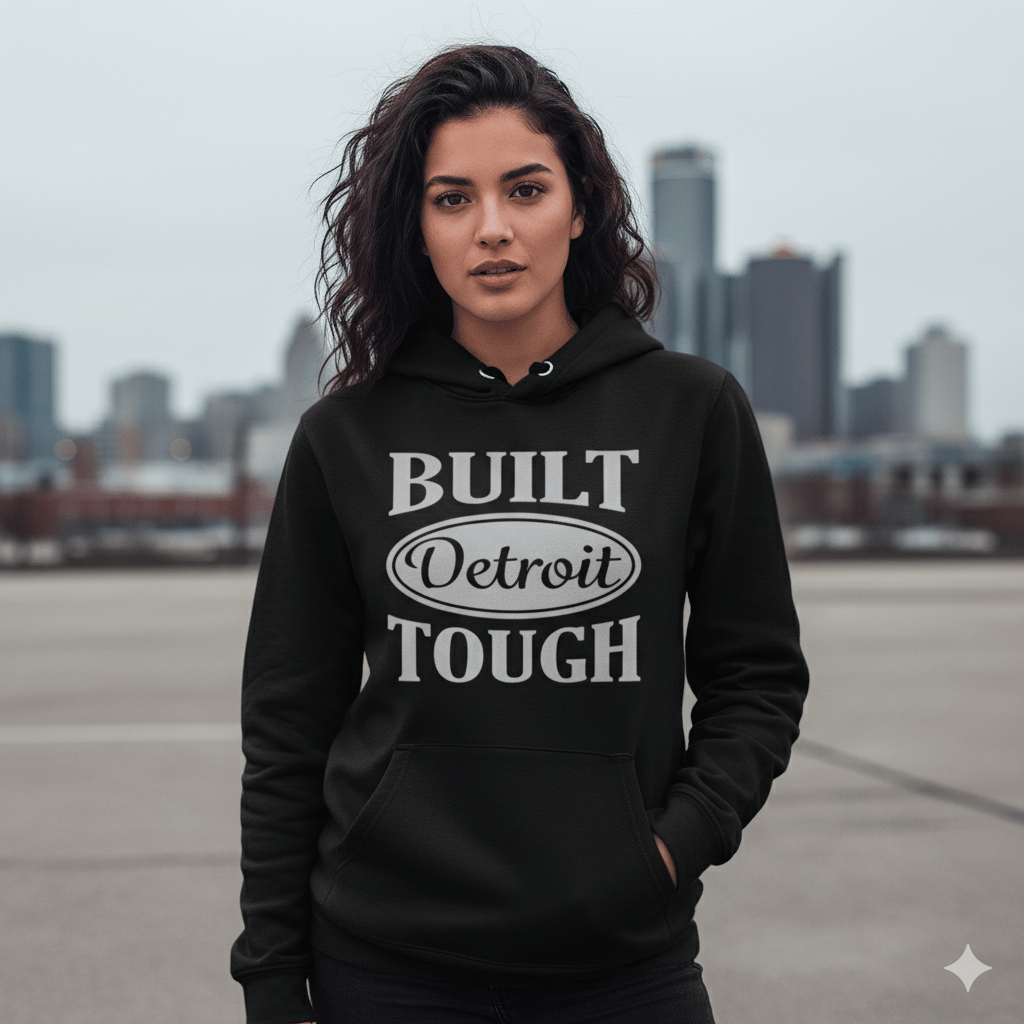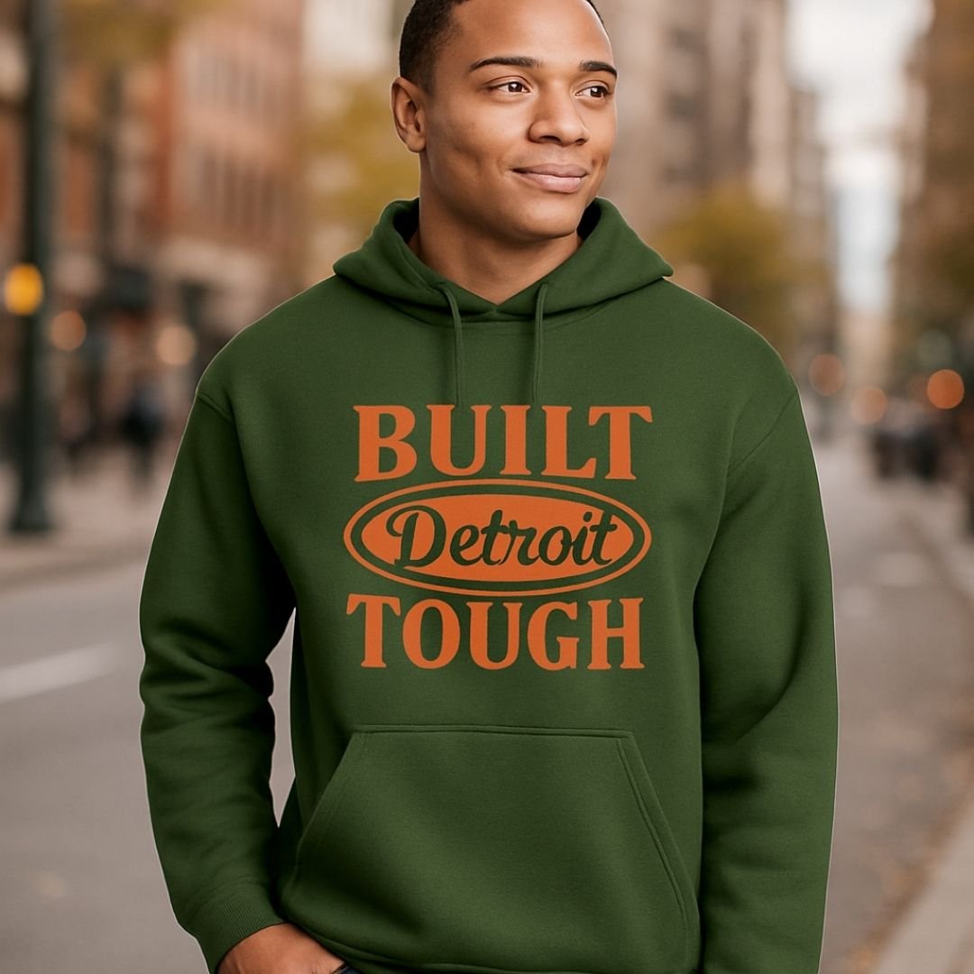 This isn't just a hoodie—it's a declaration. Created for those who understand the grind and the glory of the Motor City, the "Built Detroit Tough" hoodie merges premium comfort with an unapologetic edge. Featuring the bold graphic, a classic Detroit ethos and subtle nod to those who know what's up.